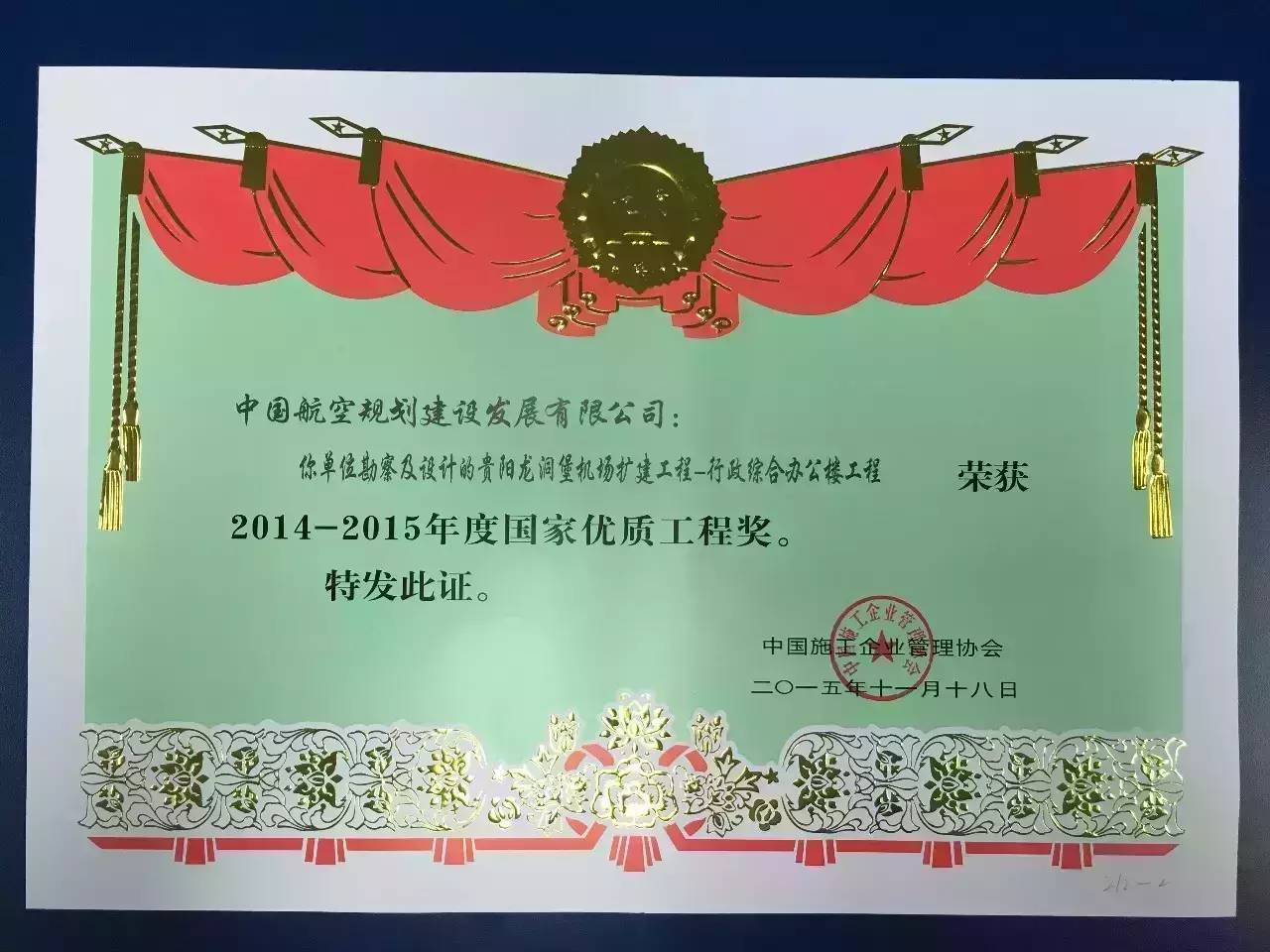 龍洞堡國際機(jī)場擴(kuò)建工程行政綜合辦公樓項(xiàng)目榮獲“國家優(yōu)質(zhì)工程獎”